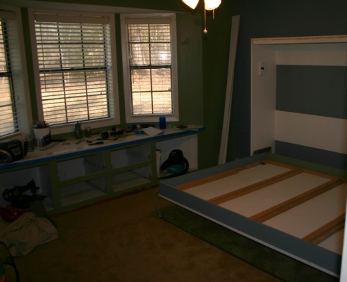 - His room is 99% complete, of course it is Caden’s old room and we are moving Caden to the former guest bedroom (which will still double as a guest bedroom, when it is done) is not done!I’m currently building a Murphy Bed, make that a Disappearing wall bed, Murphy is a trade marked name, ha! I’m making progress, and hopefully I’ll have things wrapped up on it this weekend. Of course we’ve painted Caden’s room and we’ll have a space theme going on in it eventually. Photos are coming soon! Check back on the blog next week for updates on Baby Y and photos!